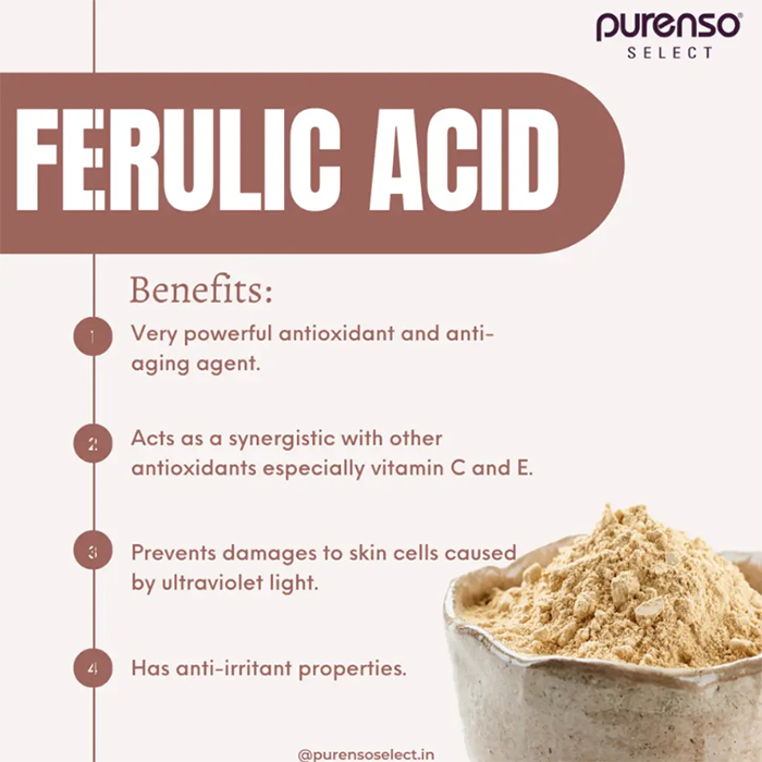 Ferulinska kiselina se također široko koristi u hrani, pićima, kozmetici i drugim oblastima. Može se koristiti kao prirodni konzervans za hranu kako bi hrana ostala svježa i produžila joj rok trajanja.