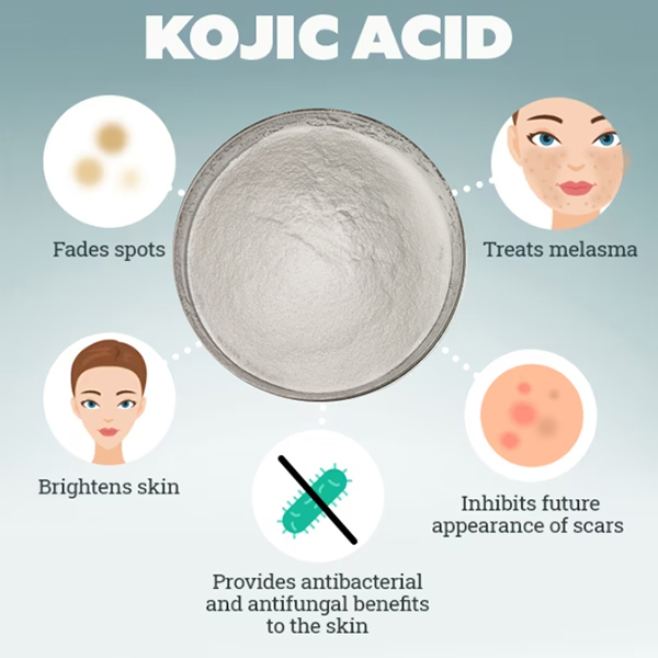 Secondly, kojic acid has antioxidant effects, which can scavenge free radicals and reduce skin damage caused by ultraviolet radiation and environmental pollution. The antioxidant power of kojic acid can promote skin regeneration, reduce the degree of skin aging, and make the skin brighter and smoother.