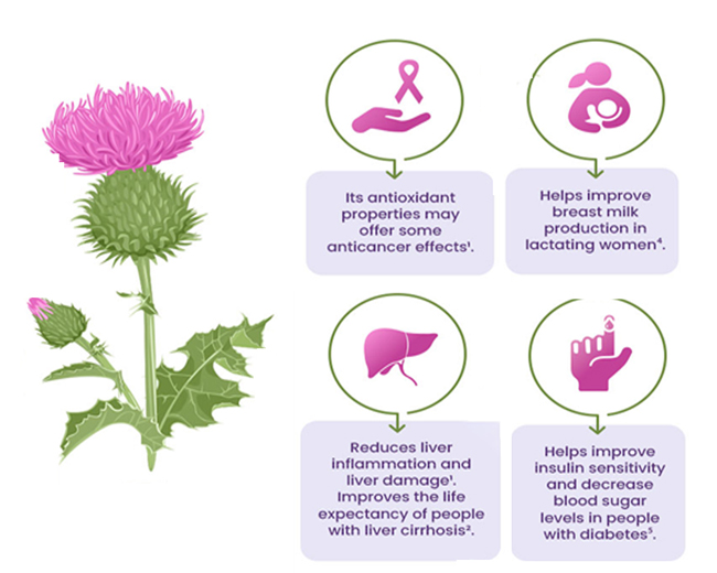 1. Боорду коргойт: Силимарин күчтүү гепатопротектор болуп эсептелет. Ал антиоксидант жана сезгенүүгө каршы касиетке ээ, боордун бузулуу коркунучун азайтат. Силимарин ошондой эле боор клеткаларынын регенеративдик мүмкүнчүлүктөрүн жогорулатып, боорду оңдоого жана функционалдык калыбына келтирүүгө көмөктөшөт.
