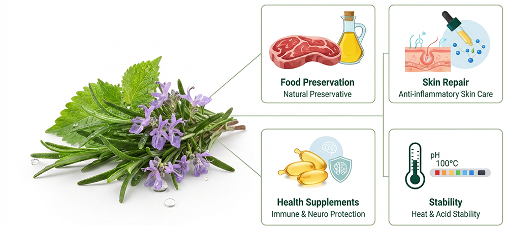 Due to its multifunctional biological properties, the application boundaries of Rosmarinic Acid are constantly expanding: