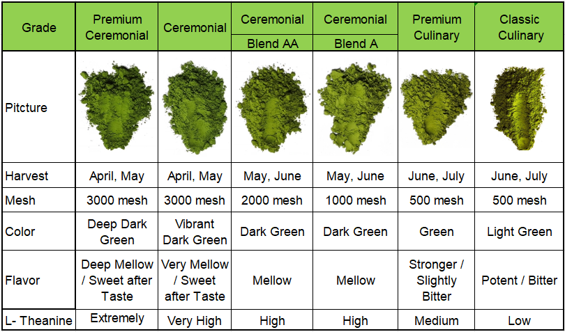 Standard grade matcha powder: As a more affordable option, standard-grade matcha powder is suitable for a wider range of food and beverage applications. It can be easily incorporated into a variety of desserts, snacks and candies, and is also an ideal raw material for many food manufacturers. Lower-grade matcha powder is often used in foods and beverages that do not require high intensity of pure matcha flavor.